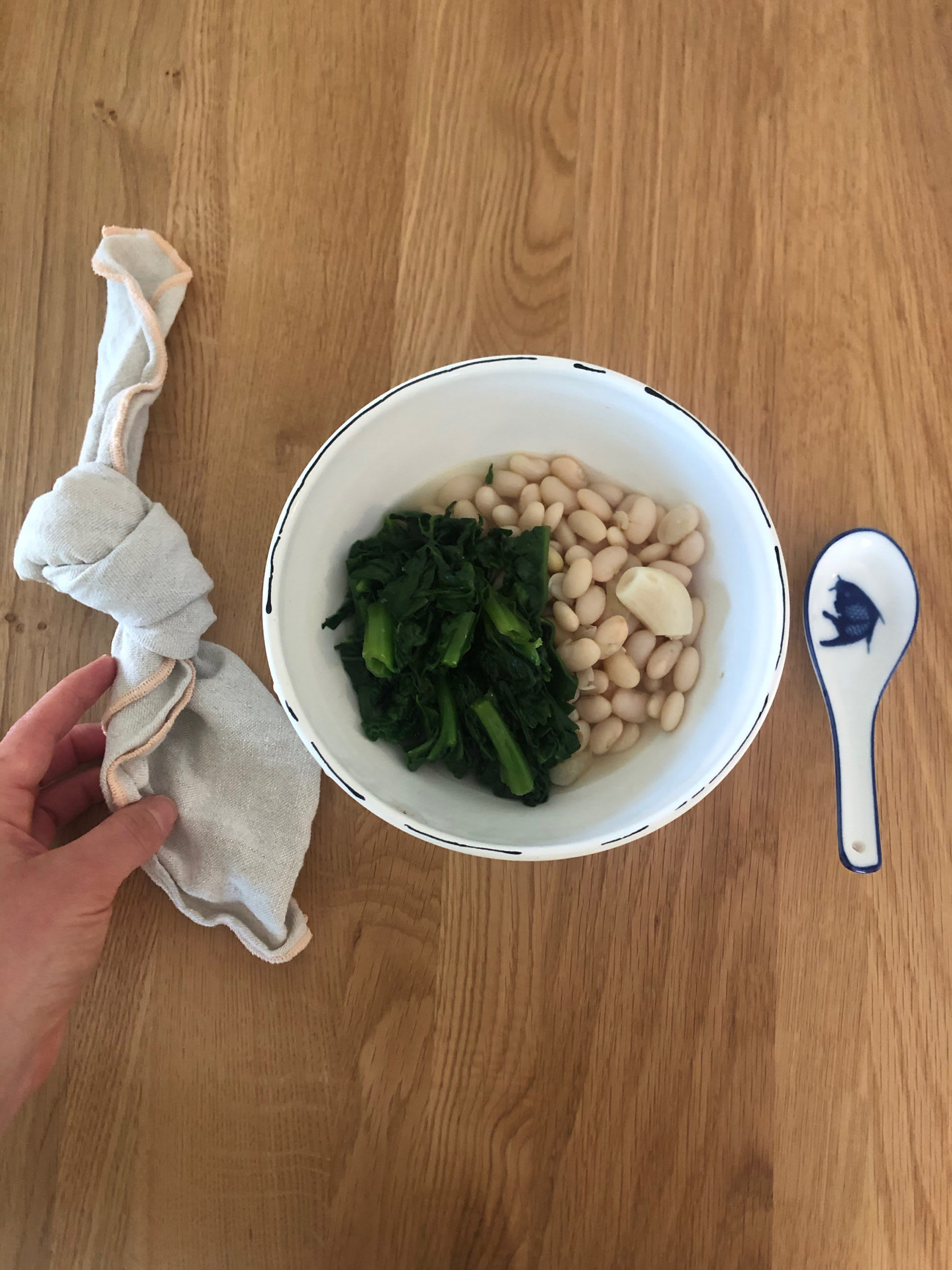 A simple bowl of brothy beans and garlicky greens is a delicious and healthy lunch.